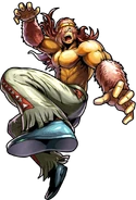 He struggles to control his new power, such as accidentally hitting a child. [26] After navigating a maze to be allocated their placement within the tournament, they are matched against Stray Akuma Chojin Combo. [27] Like the other Justice Chojins, Geronimo’s Friendship Power was stolen by Asuraman and Sunshine. [28] When they go to shake hands with their opponents, they play dirty and strike them with punches, instead. [28] Geronimo initially keeps to the sides, but helps Terryman with a combo move by jumping on his bridge. [29] He is then tagged in to fight against Sunshine. He attacks with a Back-Drop. [29]