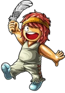 His eyes are partially hidden behind his forelock and he has brown skin. He is usually seen carrying a tomahawk and a hunting knife with him, but he hardly ever uses them. Geronimo typically wears his hair loose, where it flows to his mid-back, and a headband keeps it mostly in place, which covers his eyes. He tends to wear shorts, with fur-covered boots and arm-covers.