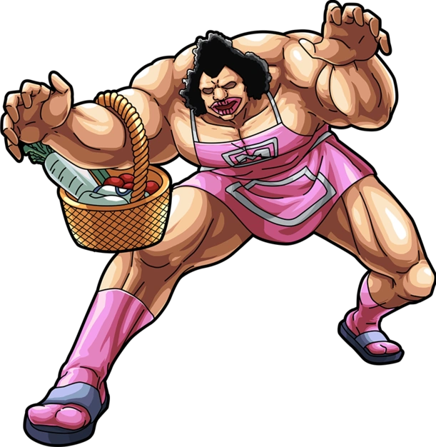 One of the few female chojin. Okan is nicknamed the Siberian Squall Mama. The defining traits of Okan is that she is a mother and wife first and foremost. Okan loses her first and only match, but continues to inspire Mantaro throughout the manga and acts as a mentor figure, as she provides advice and support from the ring-side.