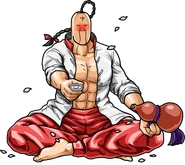 Ramenman appears during the Blood Illusions vs. The Machineguns match. [10] He is cast as the guest referee. [10] When Devil Magician pulls out a dagger during their fight, Ramenman kicks it away. [11] He commands that they do not fight with violent weapons, before he tears the costume of Devil Magician, which reveals a very array of contraband that is intended to be used as a weapon. Ramenman later looks on with glee, as Kinnikuman uses his Camel Clutch technique. [11] When Devil Magician reveals he had another secret weapon, Ramenman is shocked he missed that fact. [12]