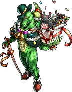Sneagator hates that Ganman thinks of himself as a funny person. Leaking blood from his body, Sneagator stands up, still determined to win. Ganman gets serious by imagining Sneagator as General Devil. As General Devil's student, Sneagator must surpass his teacher! And to do that, Sneagator sheds again but into another crocodile form. Sneagator chucks his shed skin right at Ganman, blinding him.
