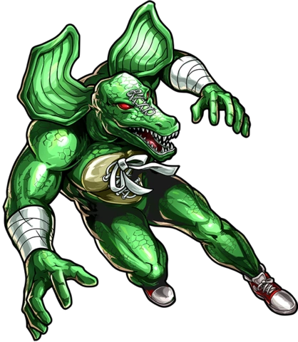 Sneagator was another of the Devil Knights, and the teacher of the Seven Devil Chojin. He had the ability to shape-shift into any form ranging from a claw to a snake to a shoe. Generally, his form was reptilian, and wore sneakers, or had laces somewhere on it. The only exception to this was his last form, the Claw form. He faced Kinnikuman and was smashed into the mat in the end. His original form was the foot of a T-Rex.